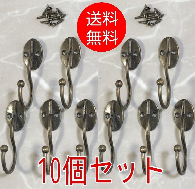 > 【10個セット】■壁掛けフック 金具 FU-01-⑩■アンティーク ブロンズ 帽子 レトロ 洋服 ヨーロッパ 古民家 ヨーロピアン インテリ