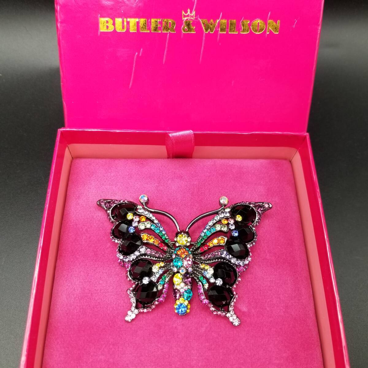 - Butler & Wilson 英国 カラフルな羽の蝶 ラインストーン 煌めき ヴィンテージ バタフライ ブローチ 大ぶり 存在感 華やか ゴージャス Y22-X