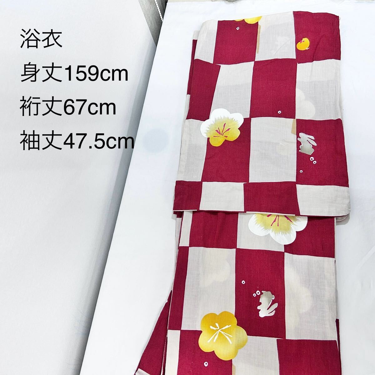 > ★美品★ 浴衣 ゆかた 着物 身長154~164cm 綿 市松 梅柄 赤系 レディース 女性 クリーニング済み 夏 花火大会 お祭り (05087並