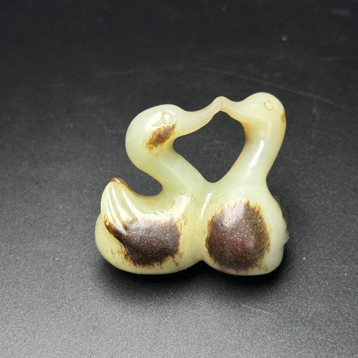 - ▽鴻▽ 和田玉製 細密彫 雙鶴 置物 賞物 古賞物 中国古玩 中国古美術