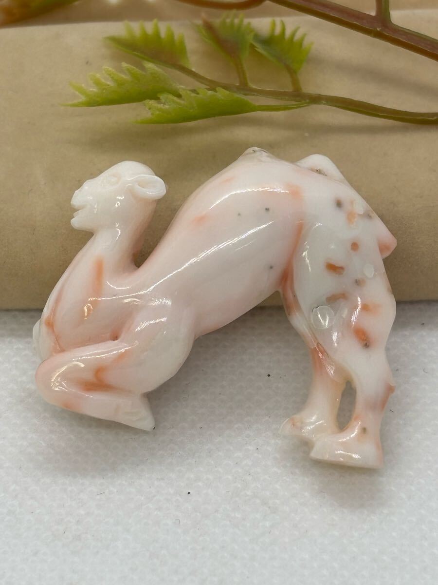 - 天然ボケサンゴ珊瑚 ラクダ雕刻のブローチ (m695)