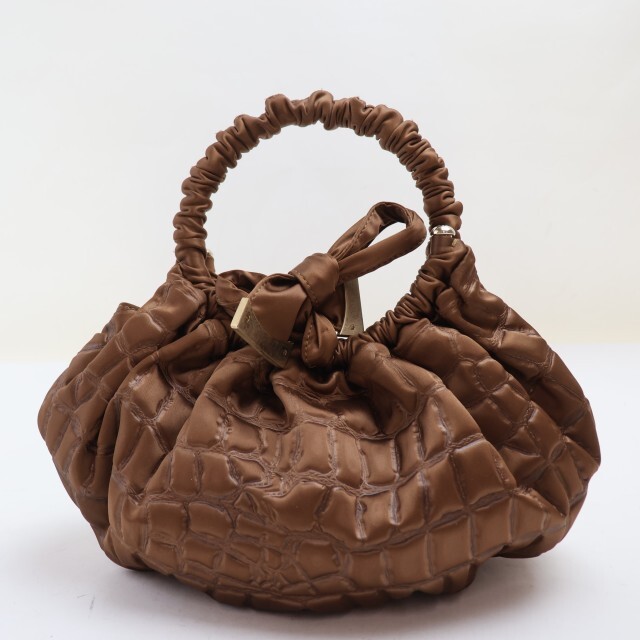 - 2505-17 ジョルジオアルマーニ ハンドバッグ GIORGIO ARMANI ポリエステル製 クロコ型押し ブラウン 金金具