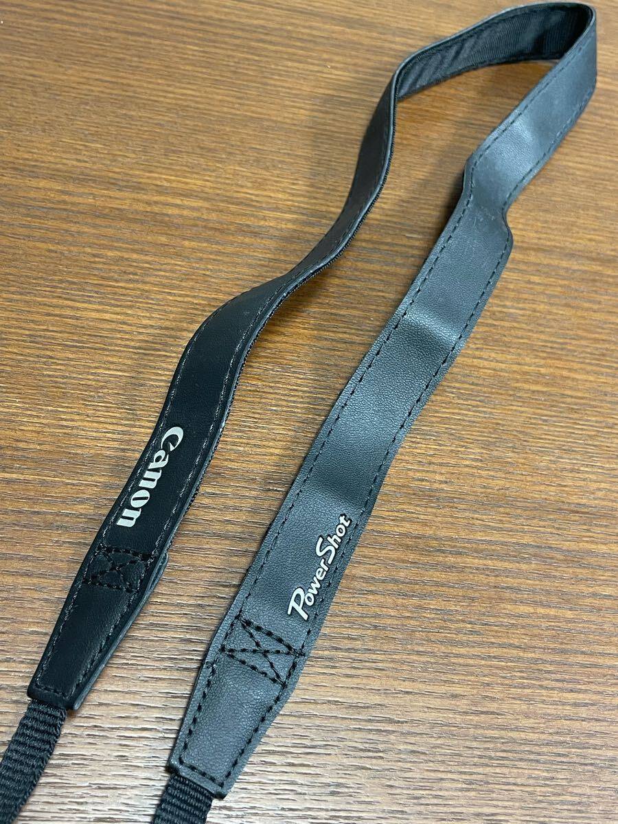 - Canon キヤノン PowerShot ストラップ ブラック 黒 レザー 純正 押し文字 美品 パワーショット