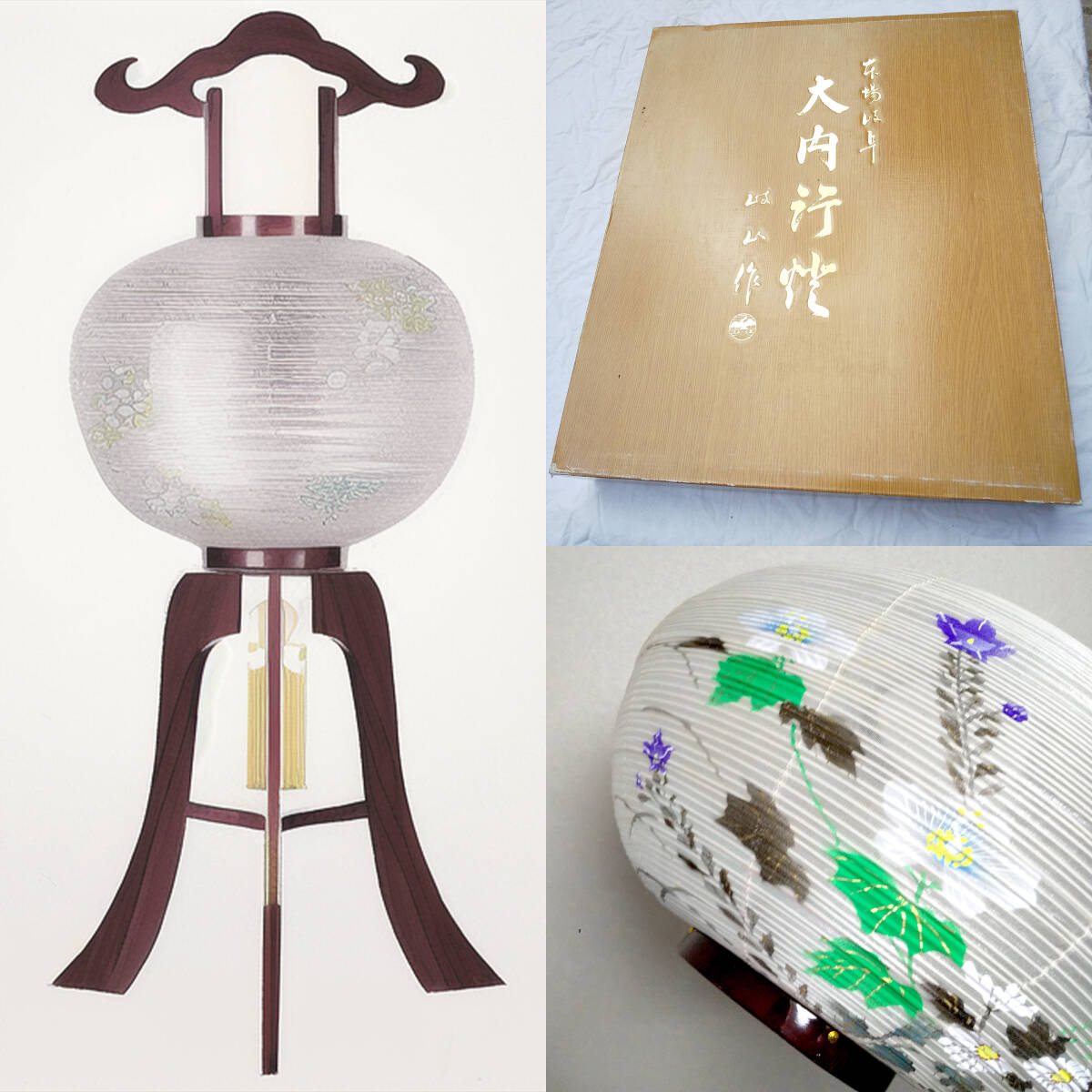 - [未使用] 大内行燈 12号『8B-1054-W』1本 本金萩隆盛蒔絵 正絹二重の盆提灯の1つのみ