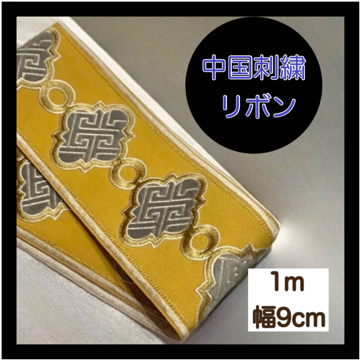 - 刺繍リボン 黄色 イエロー 刺繍 リボン 中国 1M 9cm 幅 ハンドメイド 材料 和洋裁 飾り ワンポイント 4478