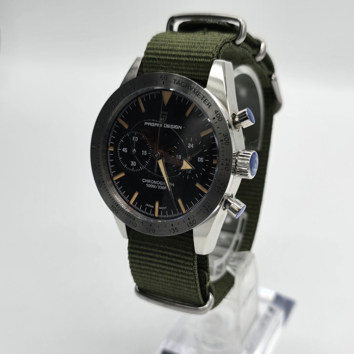 - 新品 ブラック 黒文字盤 SEIKO VK64 クロノグラフ メンズ腕時計 メカクォーツ NATOストラップ仕様