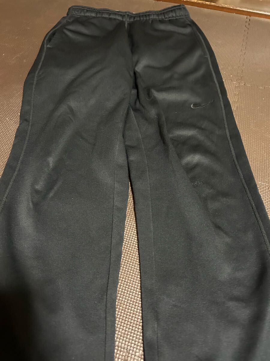 - 美品NIKE THERMA-FITウエストロゴ入り黒、ロゴ黒(刺繍)ストレッチパンツ サイズS