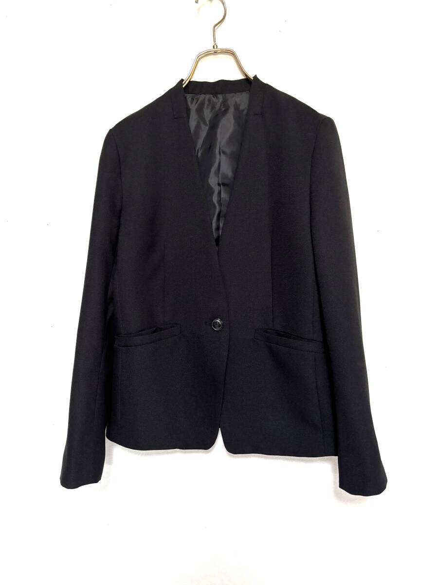 > 【新品同様 未使用に近い極美品】ノーカラージャケット レディース女性用 7AR 黒ブラック 春夏秋ビジネス面接フォーマル就活フレッシャーズ