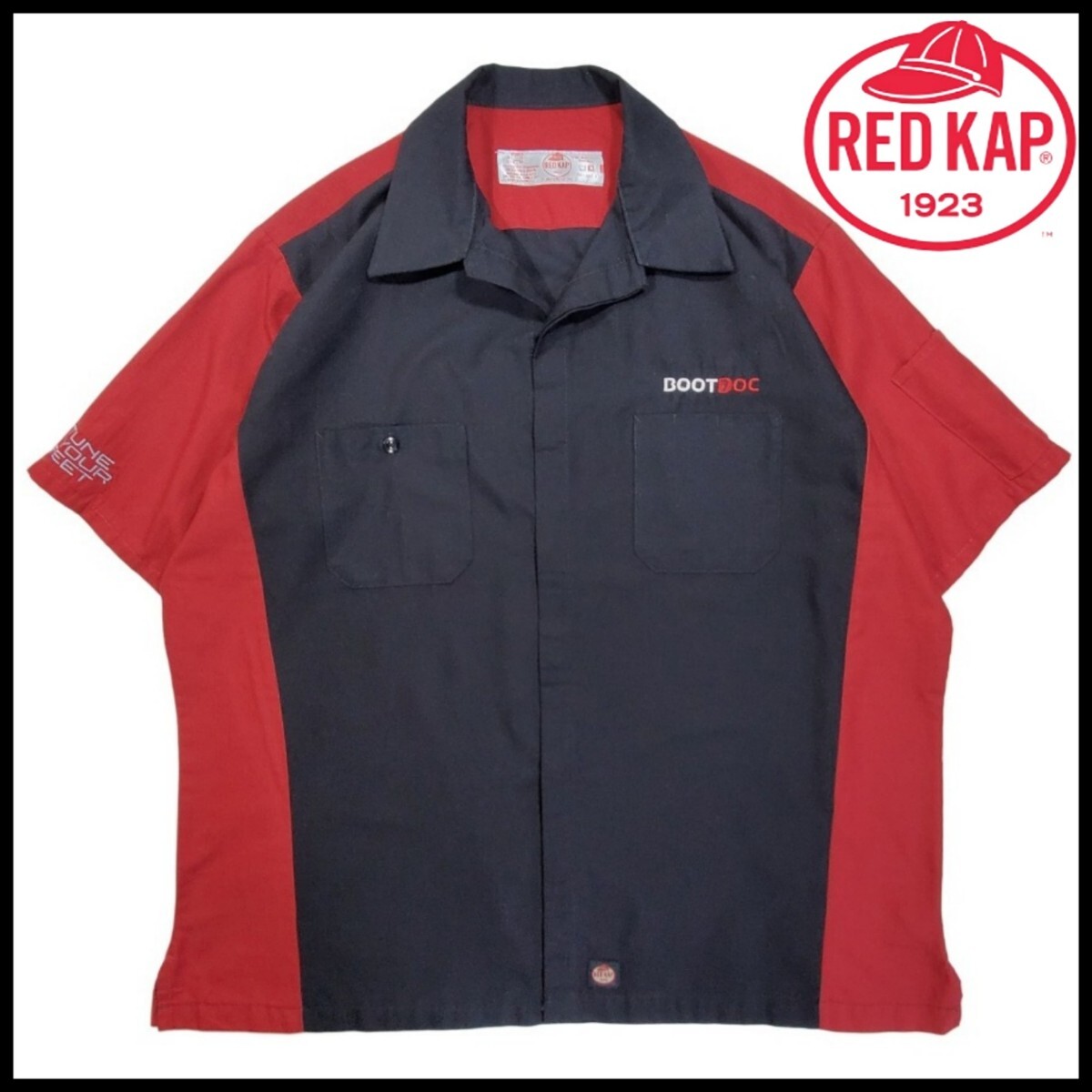 - w123/ 良好 古着 RED KAP レッドキャップ 半袖 ワークシャツ XL 刺繍 BOOTDOC 洗濯プレス済 ネコポス発送