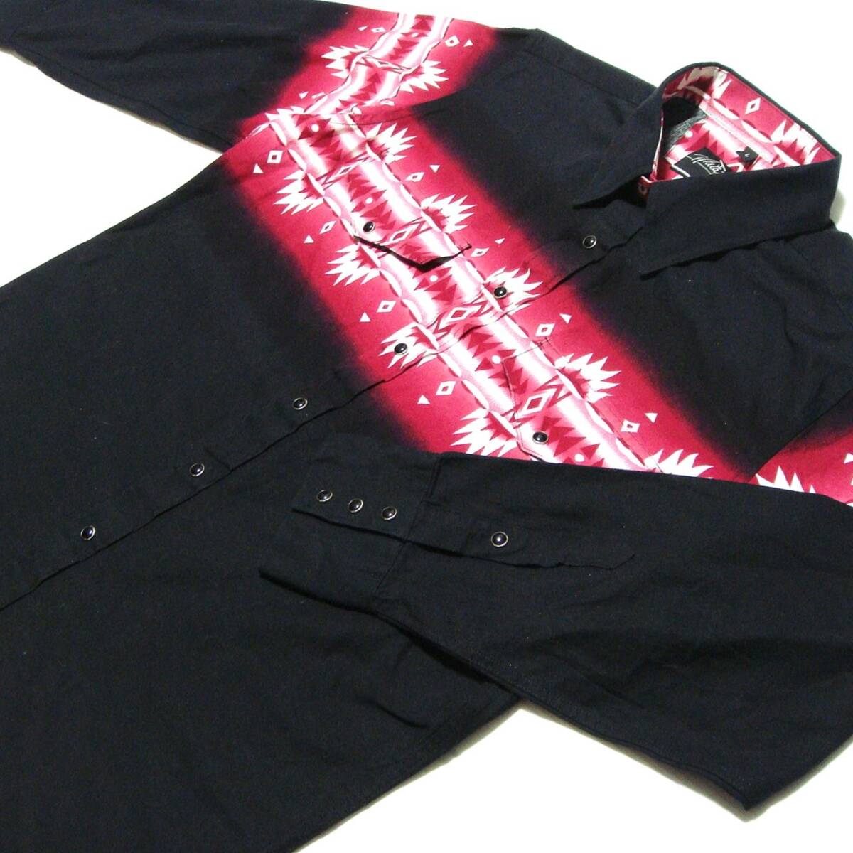 - ■送料0 ^^ ホワイトホース/White Horse【 黒 ^^ ネイティブ柄 ^^ ウエスタンシャツ 大きめ L 】比較的良い状態 ^^ アメリカ USA古着 o5■