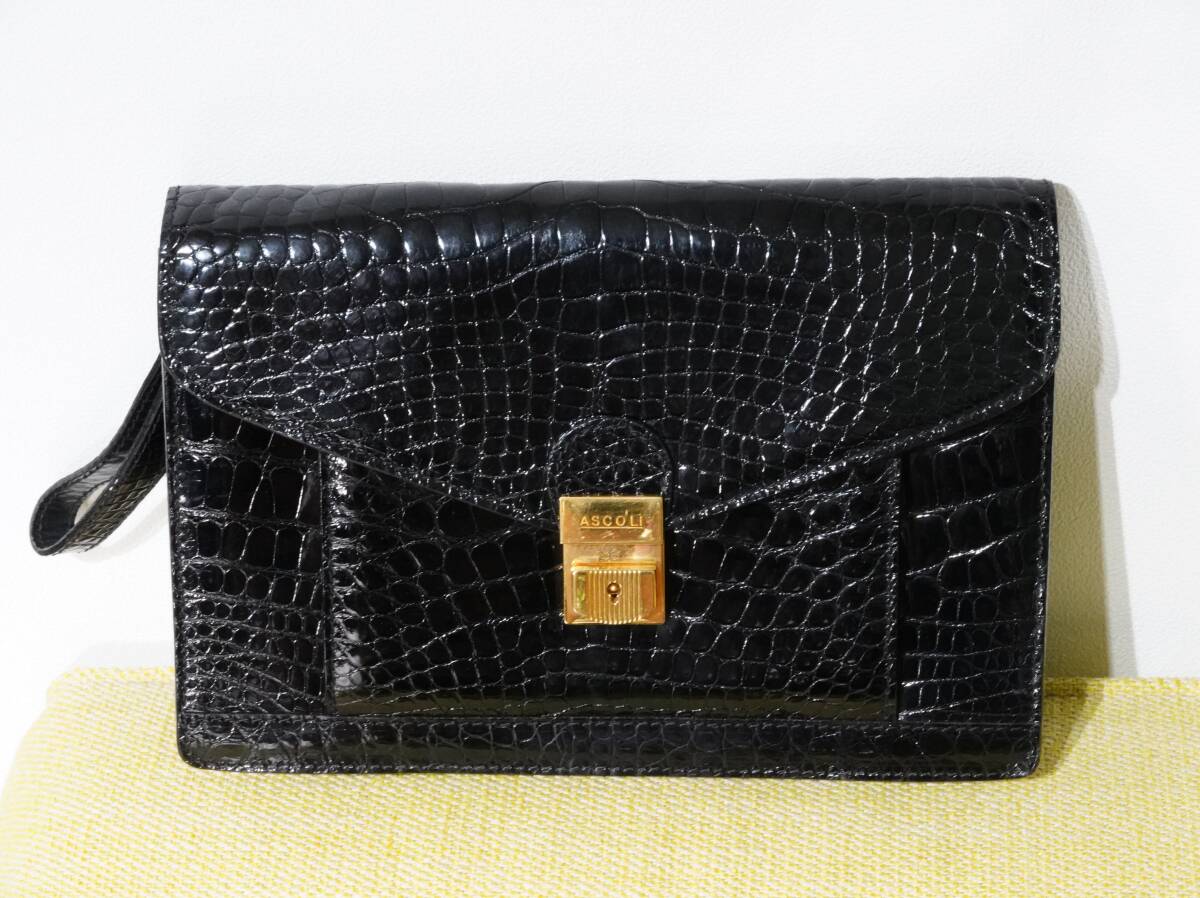- ゴールド金具 ブラック クロコダイル メンズ バッグ 本クロコダイル革 ワニ 鰐 黒