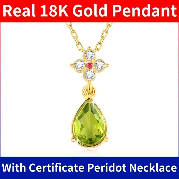 証明書付き、女性用ペリドットK18ゴールドネックレス