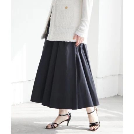 > 23SS IENAイエナ タイプライターギャザータックスカート◆タフタフレアボリューム plageドゥーズィエムトゥモローアローズ ブラック黒