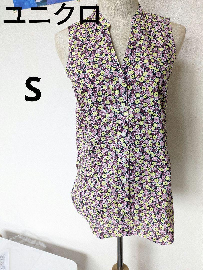 - 【未使用】ユニクロ 小花柄 ノースリーブ ブラウス チュニック S