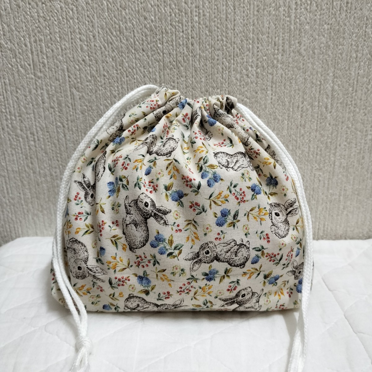 - お弁当巾着 お弁当袋 巾着袋 ミニ巾着袋 ハンドメイド ウサギ柄