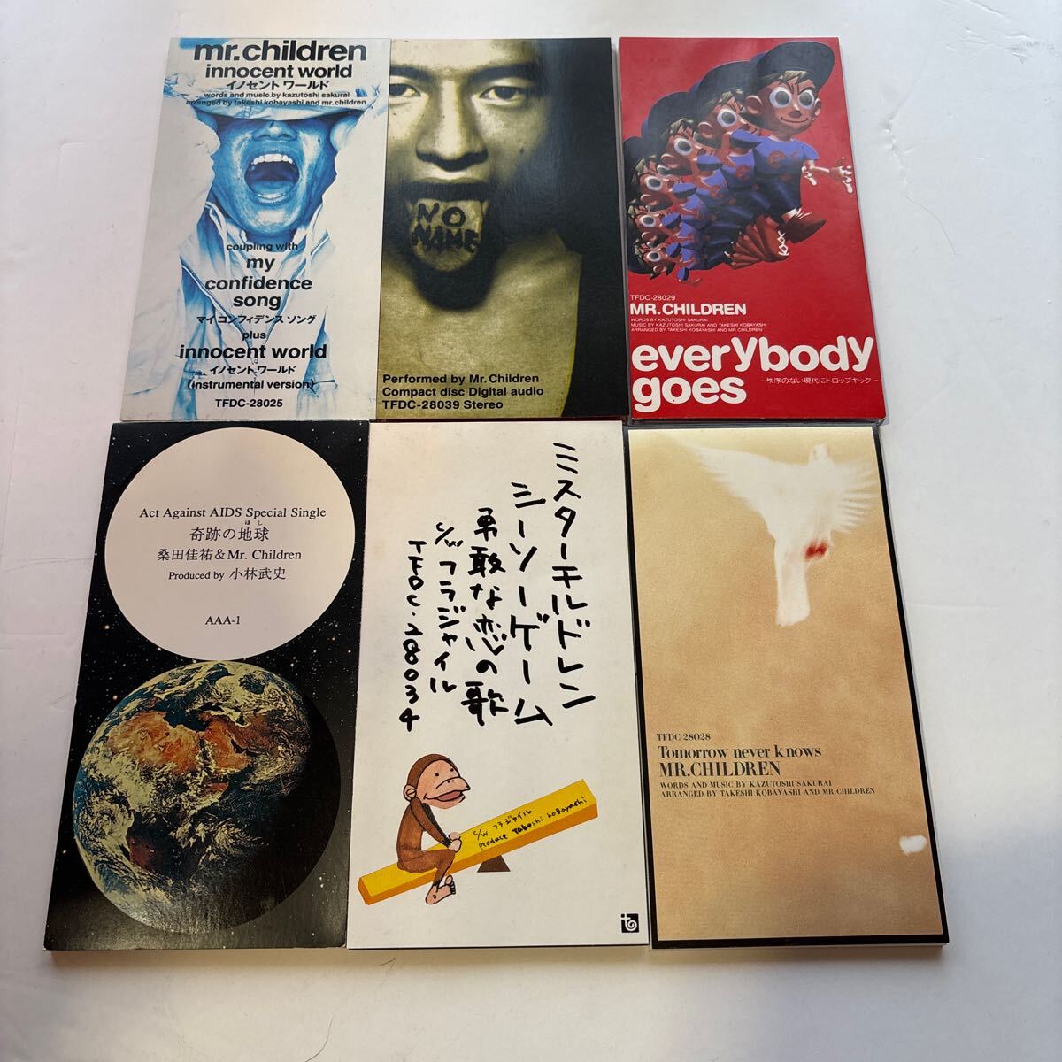 - シングルCD まとめて6枚セット Mr.Children/ミスターチルドレン イノセントワールド、Tomorrow never knows、奇跡の地球、名もなき詩、