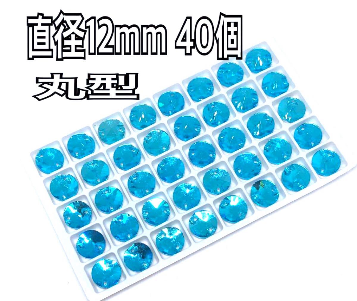 > 直径12mm 40個 丸型ガラスビジュー 高輝度 衣装装飾 レオタード 新体操 ソーオン スカイブルー