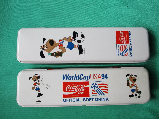 - コカ・コーラ サッカー ワールドカップ USA 1994 缶 ペンケース 2種セット 中古品
