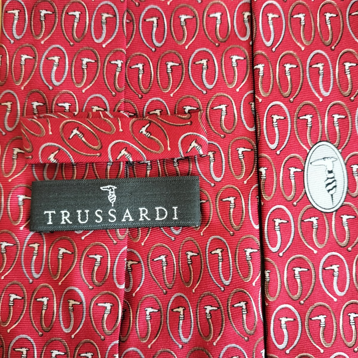 - TRUSSARDI(トラサルディ)赤紐ロゴ柄のネクタイ