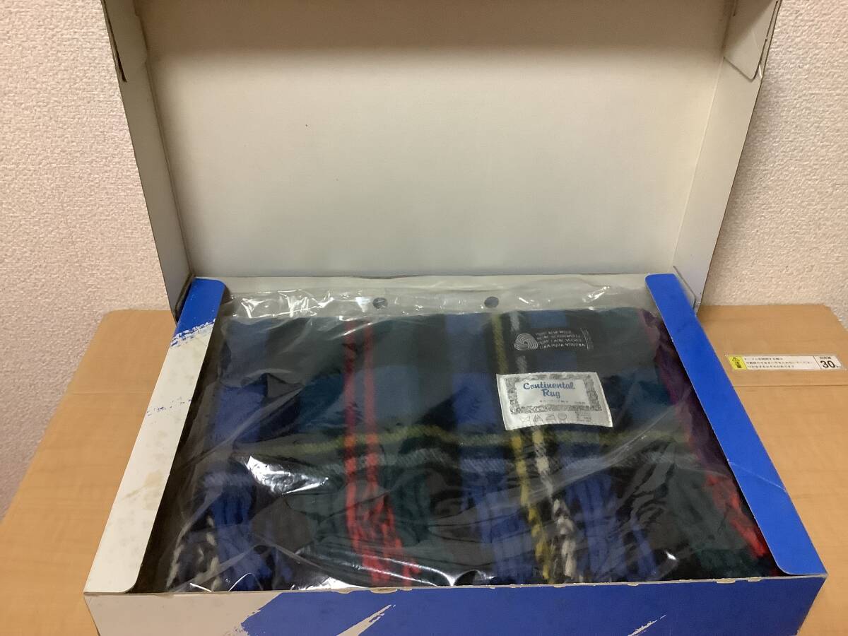 > 新品未使用 Continental Rug コンチネンタル ラグ 膝掛け 80cmX125cm 100% ウールトラベルラグ ルーマニア製 ブルー/グリーン