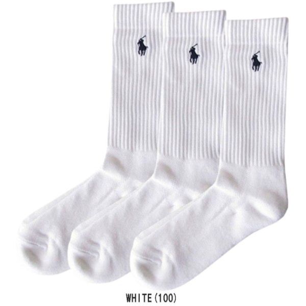 > ※訳あり アウトレット POLO RALPH LAUREN(ポロ ラルフローレン)レディース クルー ソックス 3足セット 女性用靴下 7310PK WHITE(100)