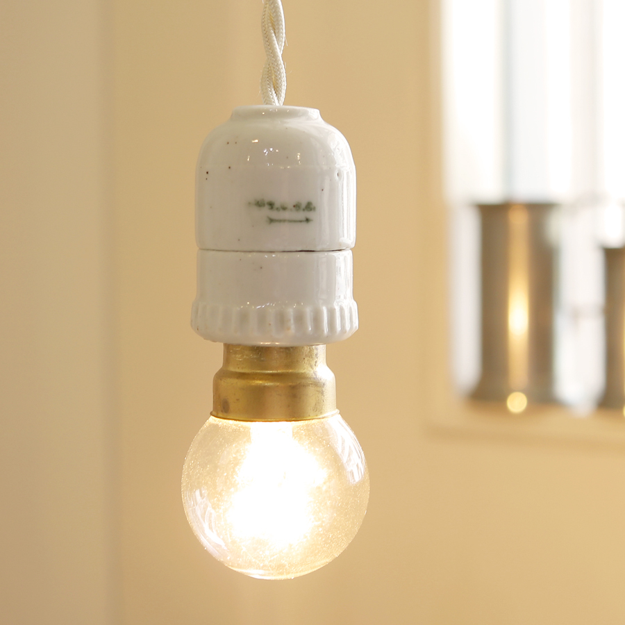> ロゴ入り 裾ストライプ ソケット フランス アンティーク 陶器 ランプ 2-A* /磁器 北欧 照明 真鍮 レトロ アトリエ アンティーク FT