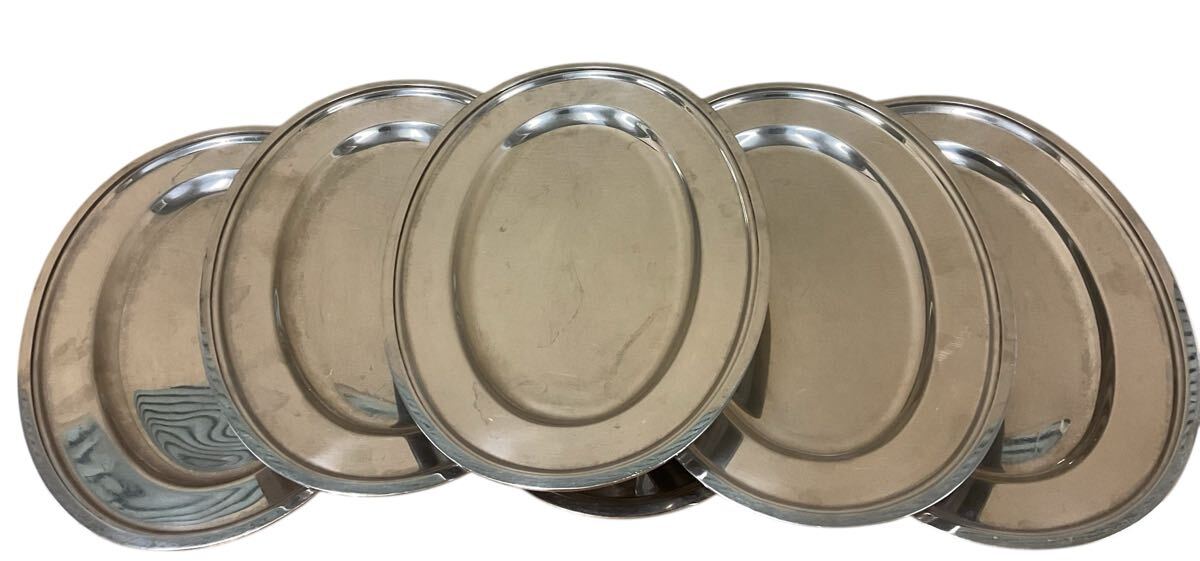 - 18-8 ステンレスプレート 楕円形 6枚セット ステンレス皿 ステンレス 中古 オードブル 焼きそば 焼肉 パーティー 大人数