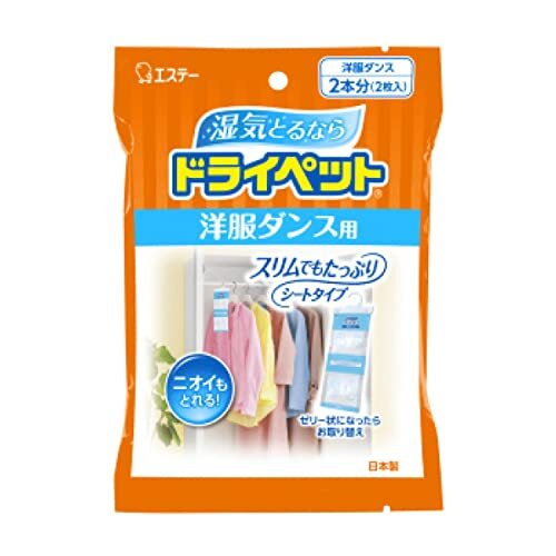 ▼▼▼▼▼▼注意事項▼▼▼▼▼▼・送料込み(送料650円が商品価格に含まれています) 一部地域では追加送料あり。・お取り寄せ商品です。弊社にて手配後、メーカー・卸業者からの直送になります。・まれにメーカー欠品、出荷遅延等が発生致します。問題発生時は別途メールにてご連絡致します。・配送方法の指定、日時指定、置き配、ギフト対応、他商品との同梱配送などは対応できません。・まとめ買いや複数購入の場合は通常より発送に時間が掛かる場合がございます・複数個口の場合、2階以上への搬入ができない場合があります。(その場合は1階での受け渡しとなります)・大型連休、お盆、年末年始などは発送をお休みさせていただく場合がございます・メーカー都合により、パッケージは予告なく変更される場合がございます・梱包用のダンボールはリサイクル品を使用させていただきます。・注文に関するご連絡(注文確定通知・発送通知など)はメールでご案内させていただきます※商品ページの内容について、少しでもご不明な点などがございましたら購入前に一度ご連絡ください▲▲▲▲▲▲注意事項▲▲▲▲▲▲〇商品説明●洋服ダンス内の湿気を取り、こもったニオイを消臭します。●薬剤がゼリー状になるので、除湿効果がひとめでわかります。●防虫剤ムシューダ・ネオパラなとと併用しますと、除湿・防虫の効果で衣類を守ります。除湿・防カビ・消臭の3つの効果を発揮するシートタイプの除湿剤。湿気もニオイもとれる。吊り下げて使えるフック付き2枚〇商品仕様単品サイズ150×210×38(mm)容量2マイ(出典:エステー)