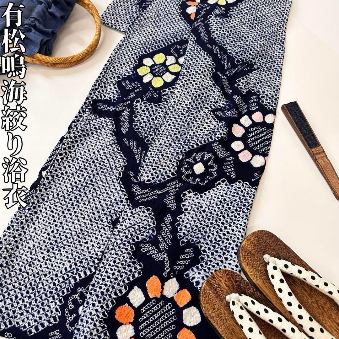 - 【着物と帯 時流】Y32y◆本場有松鳴海絞り浴衣◆裄66丈145.5