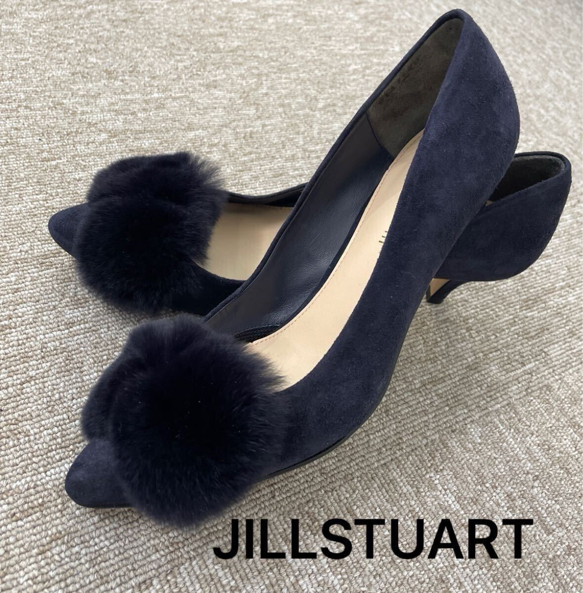 - 【311】美品 JILLSTUART ジルスチュアート ファー付き スウェード パンプス ネイビー スエード レディース23㎝ 日本製