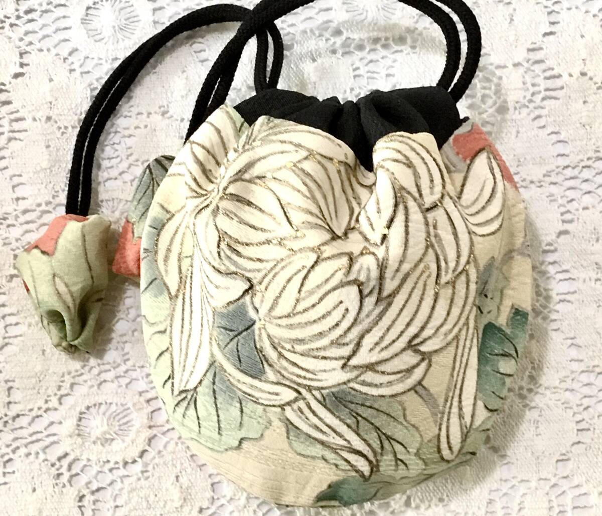 - 古布748小丸袋( 金彩の八重菊) 残り僅 時代着物地
