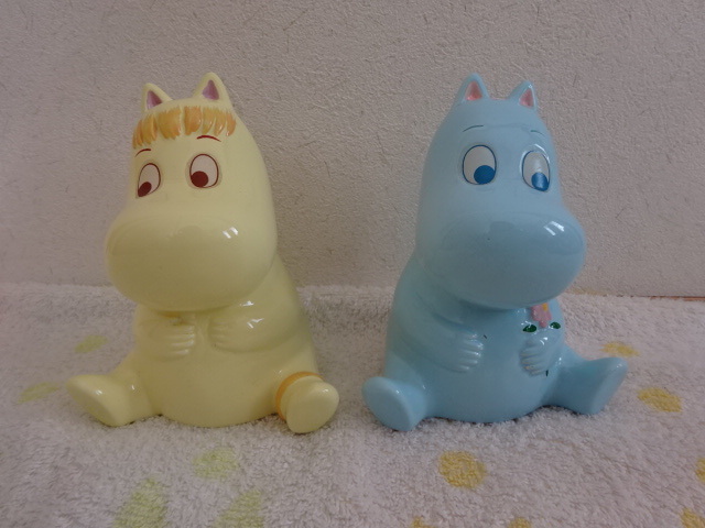 - 非売品 レア品 ムーミン 北陸銀行 貯金箱 陶器製 2体セット 1990年