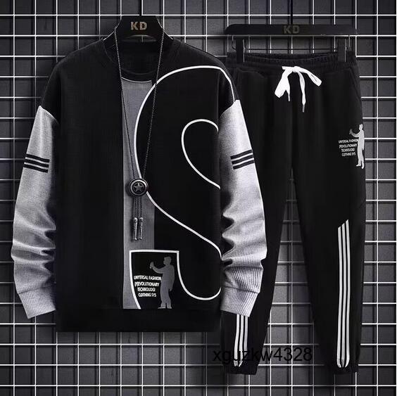 - メンズ セットアップ トップス+ズボン 2点セット スポーツウエア 大きいサイズ 長袖春秋 ゆったり カジュアル 黒白 3色 M~5XL選択可/XS363