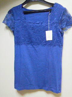 - ●新品可愛い濃いブルー系レースデザインカットソーMサイズ