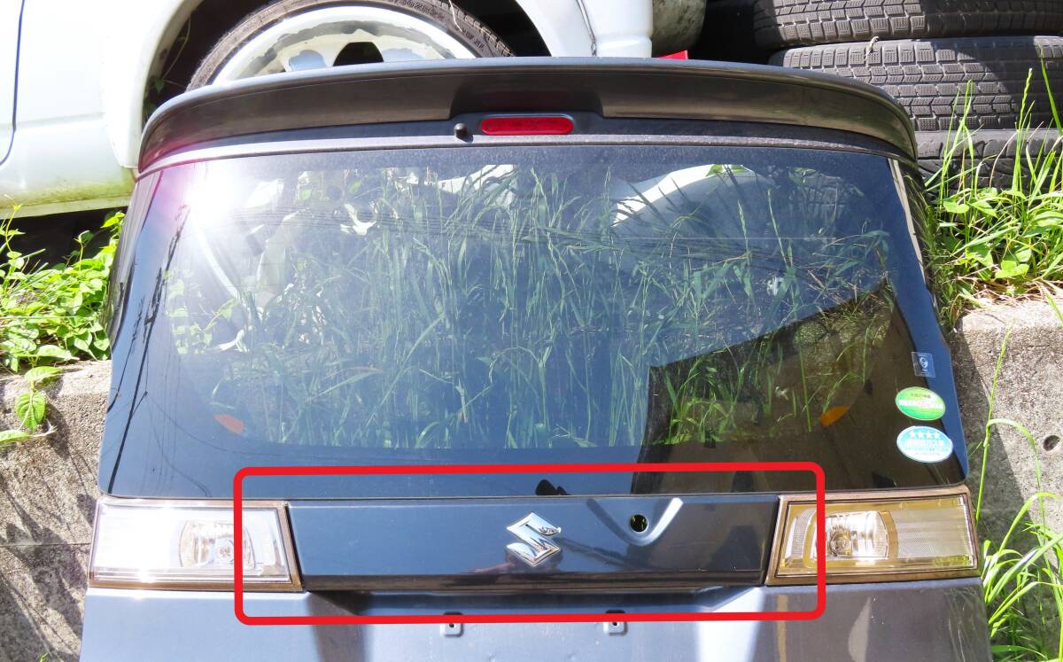 - H26 MK32S MK42S スペーシア SPACIA MM32S MM42S フレア FLAIR 純正 リアゲート バックドア ガーニッシュ フィニッシャー / 83941-81M20