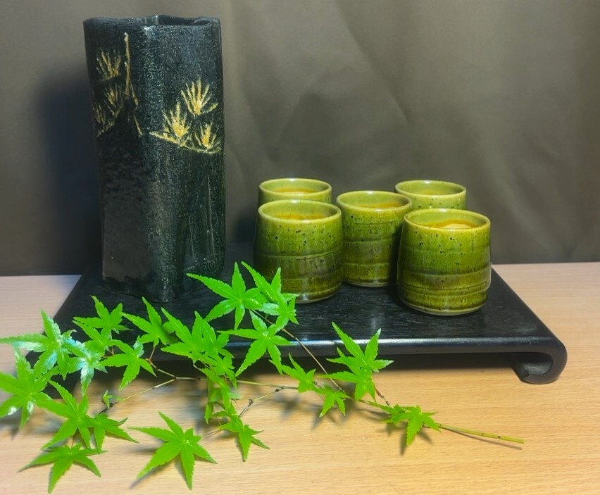 - ■47 黄瀬戸 豊窯 美山作 【四方花瓶 +湯5個】セット