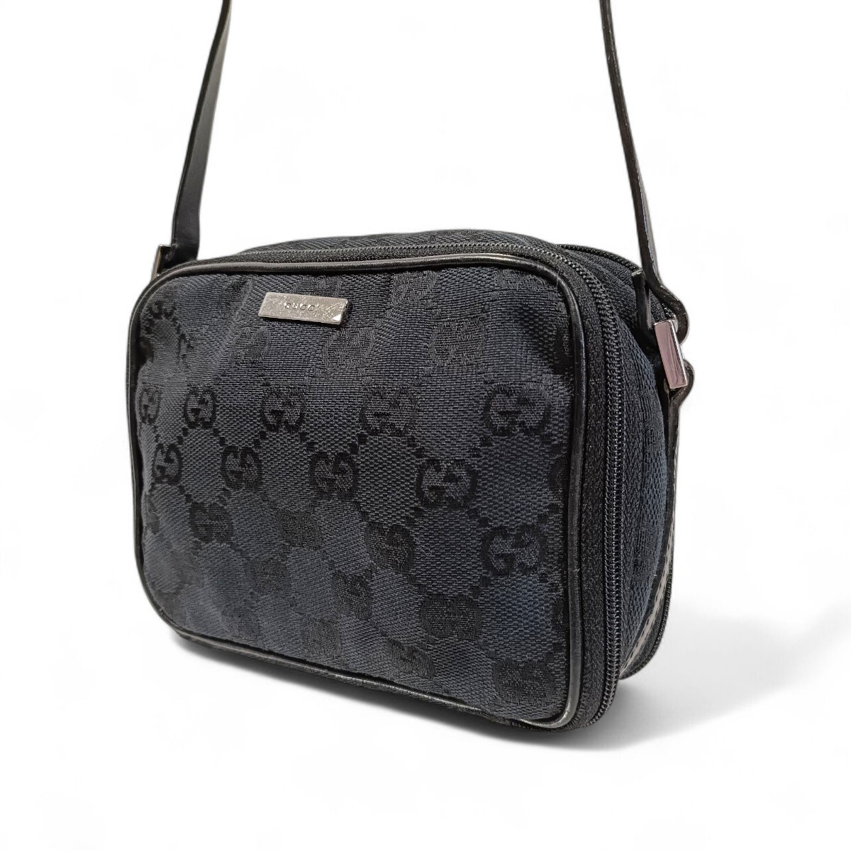 - 【美品】 正規品 GUCCI グッチ ミニ ショルダーバッグ GGキャンバス 黒 ブラック レザー 革 シルバー金具 スマホケース ポーチ 小さめ鞄