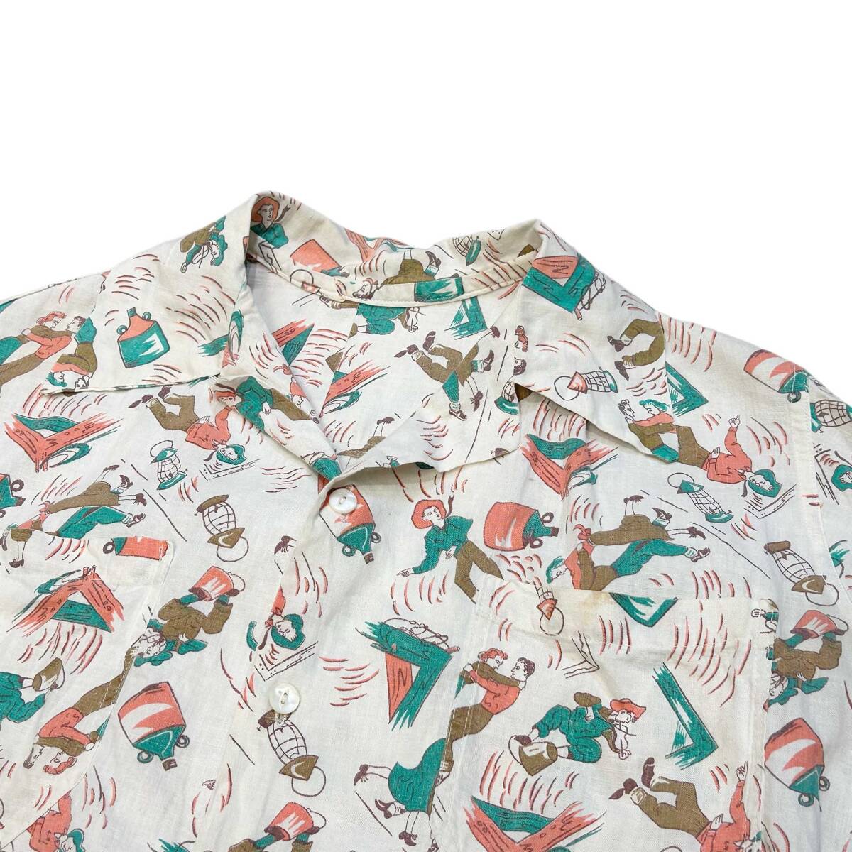 - 希少【40s 50s ビンテージ コットン ウエスタン カウボーイ 総柄 オープンカラー ボックスシャツ】アメリカ ハワイアン ギャバシャツ