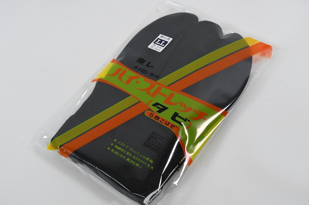 - 紳士用 ハイ・ストレッチ足袋 5枚こはぜ LL寸 黒 東レ ナイロン使用 26.5cm~27.0cm
