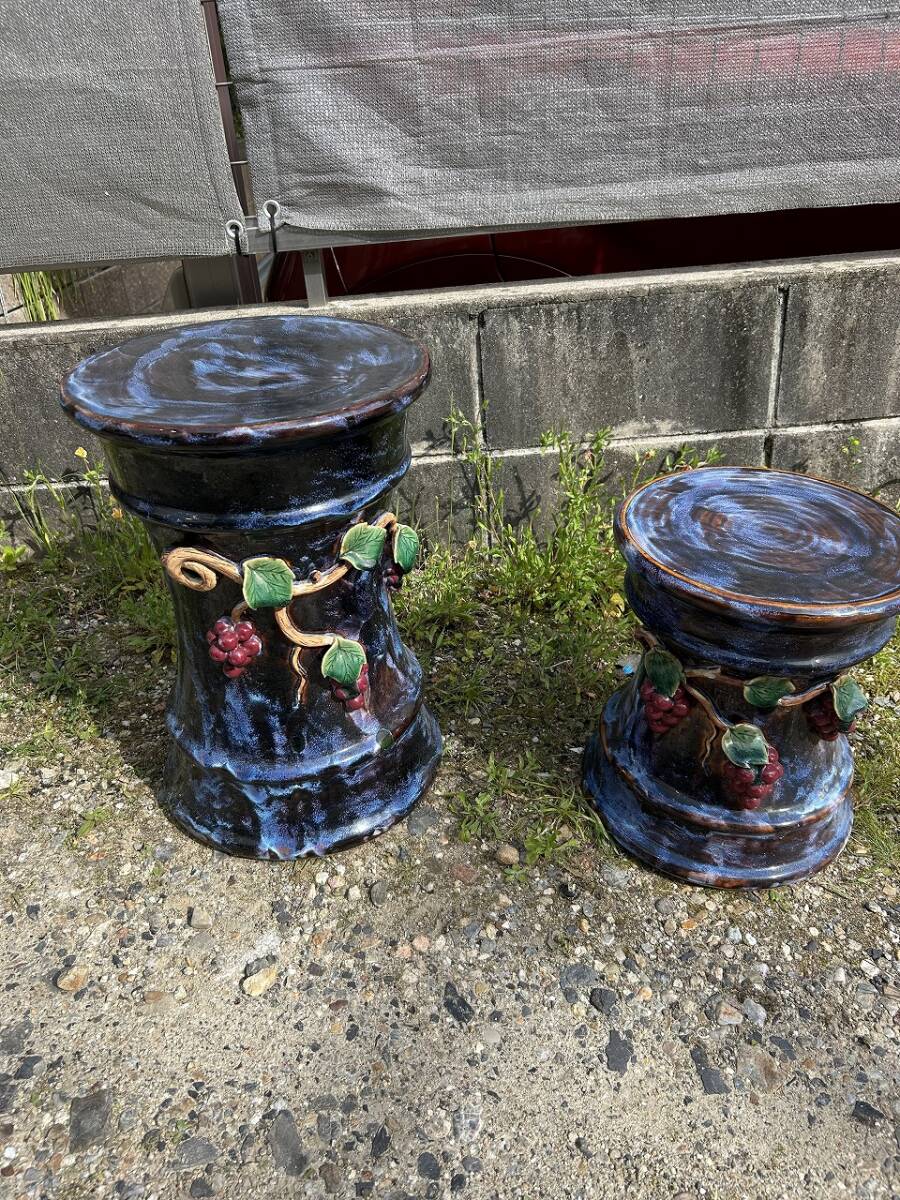 - D 764 美品 ガーデンファニチャー 陶器 テーブル1 椅子1脚 2点セット 中古