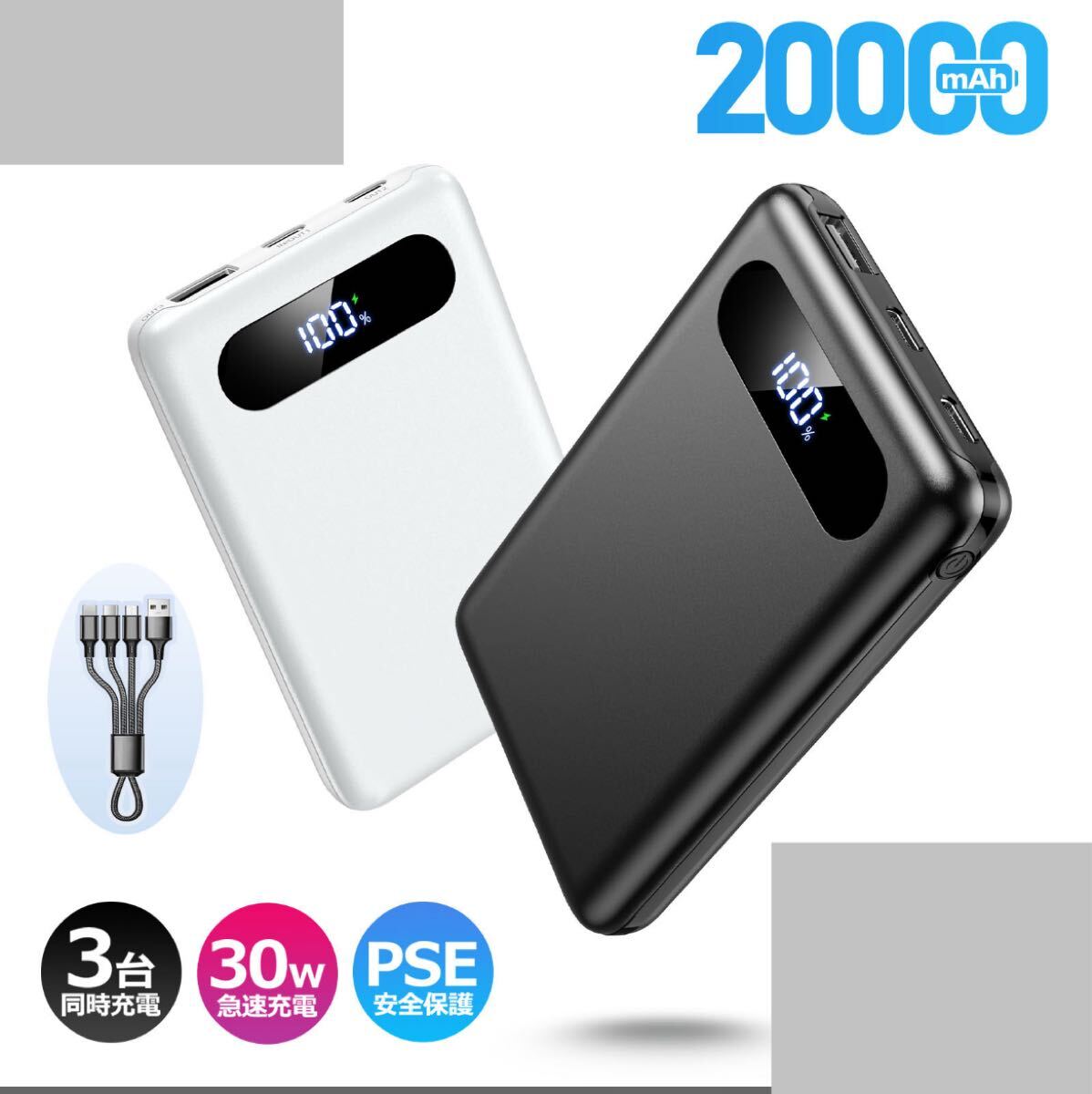 - モバイルバッテリー 20000mAh 大容量 軽量 小型 LED残量表示 最大5台同時充電 スマホ充電器