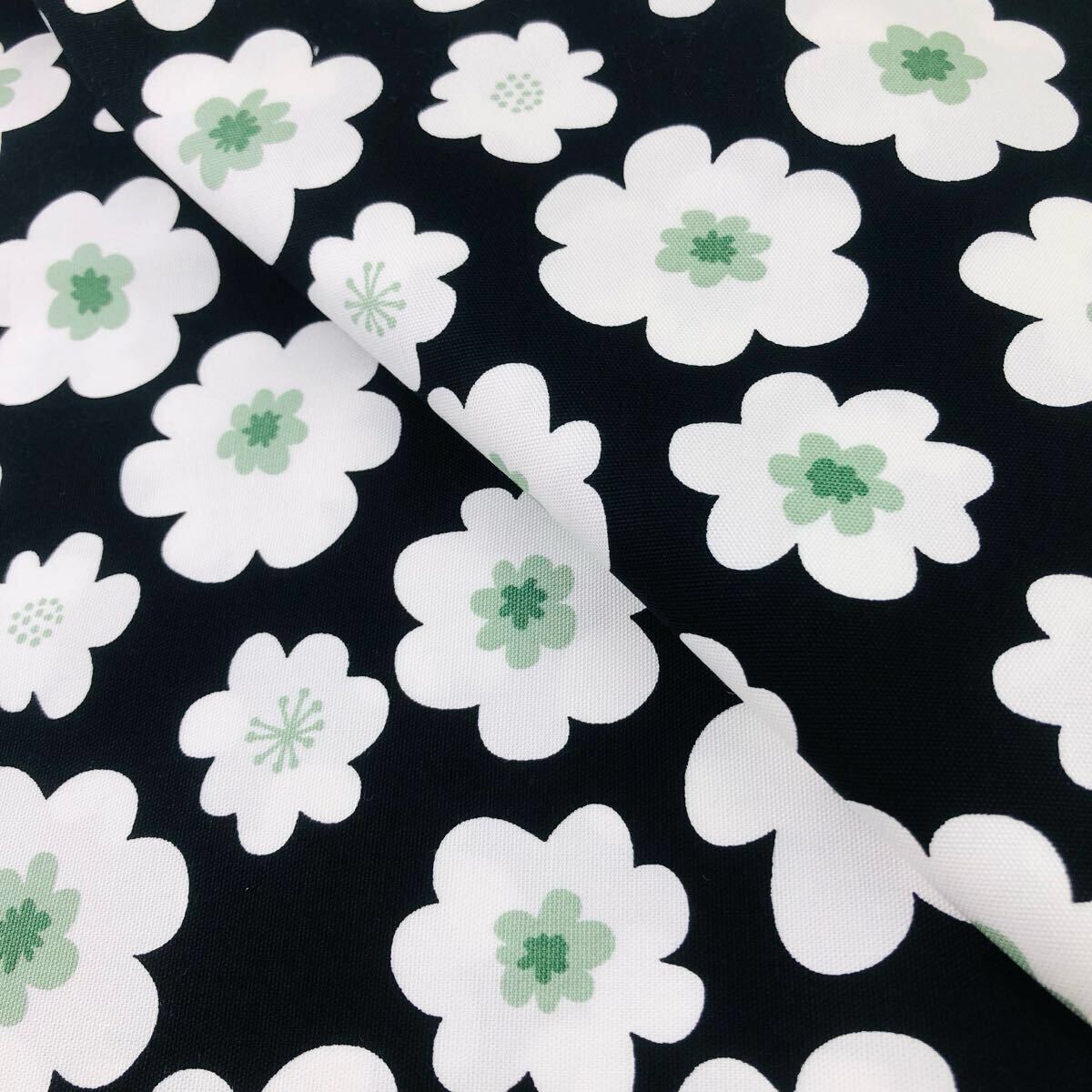 - 1m 日本製 オックス 北欧 花柄 生地 コットン ブラック はぎれ