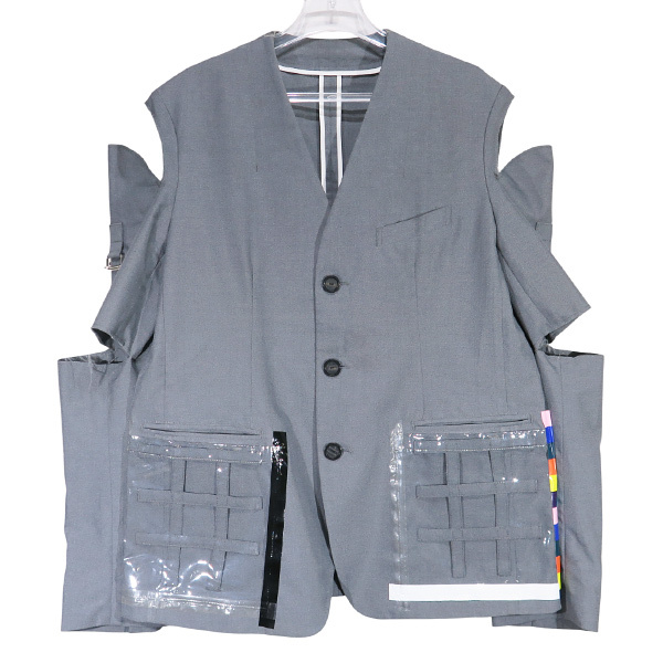 > TAKAHIROMIYASHITA TheSoloist. タカヒロミヤシタ ザソロイスト THREE-WAY COLLARLESS JACKET カラーレス ジャケット グレー サイズ46 Mayk