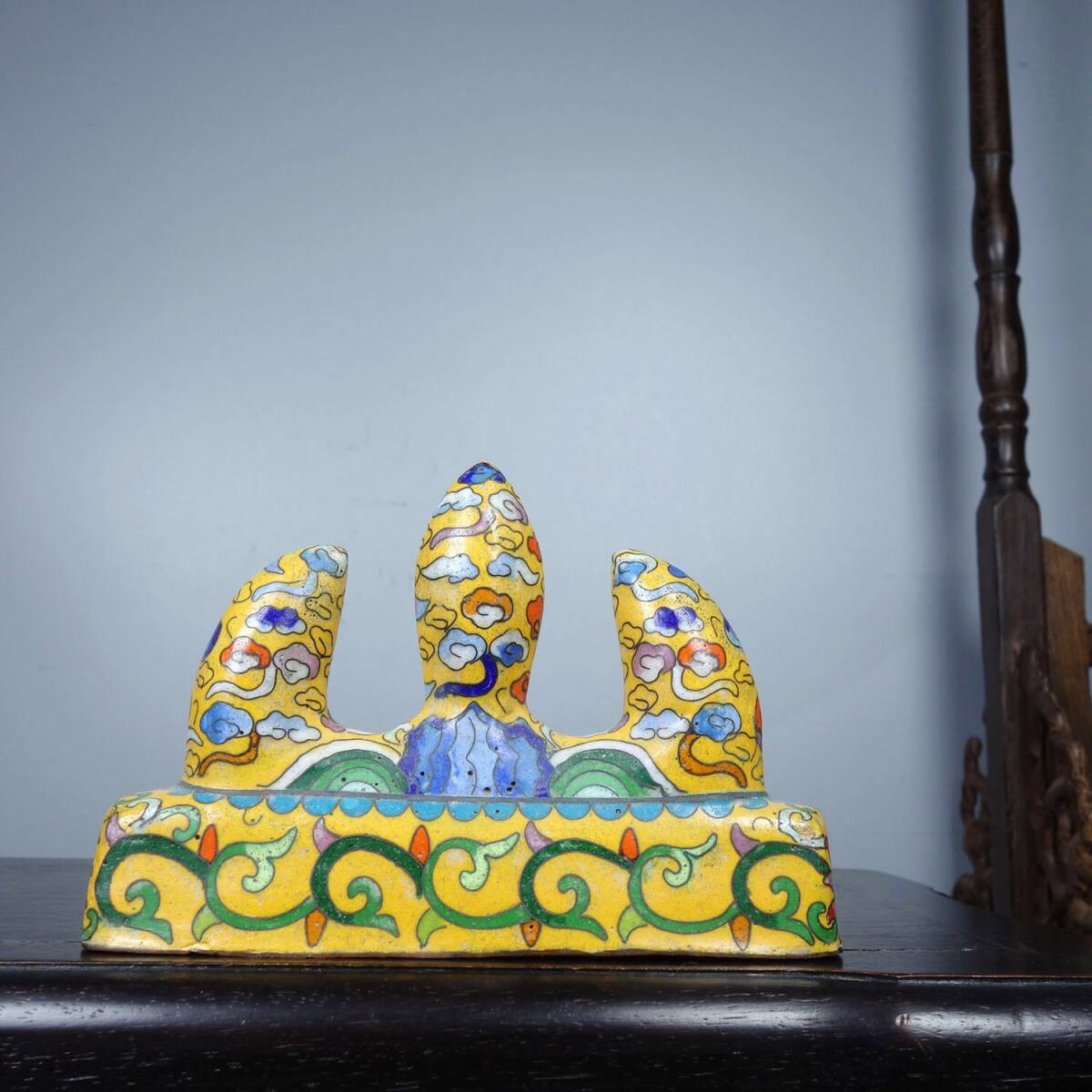 - ▽鴻▽ 銅製 景泰藍 琺瑯彩 祥云紋 筆架 置物 賞物 古賞物 中国古玩 中国古美術
