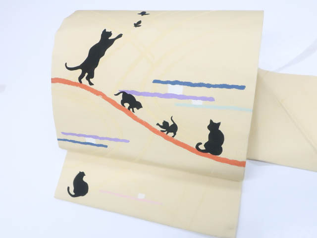 - 《京都一輝堂》【着物】九寸名古屋帯 オリジナル 太鼓柄 猫柄 r7b05-127