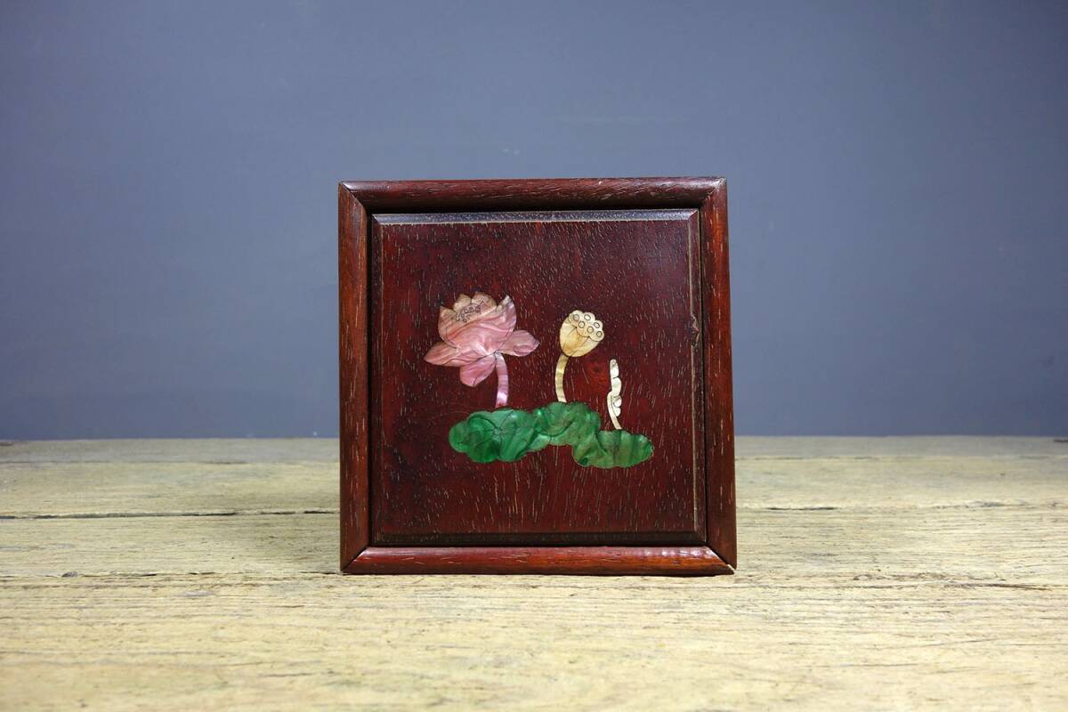 - 『館蔵珍品 花梨木製 細密彫 貝殼嵌 彩繪 和和美美紋 首飾盒』置物 賞物 貴重物品 収蔵品 中国古美術
