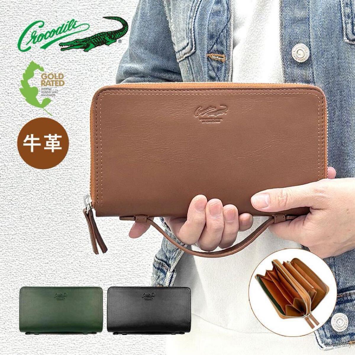 - 財布 メンズ ラウンドファスナー 長財布 ブランド 大容量 革 6cm089 Crocodile クロコダイル 小銭入れ付き 本革 チャ