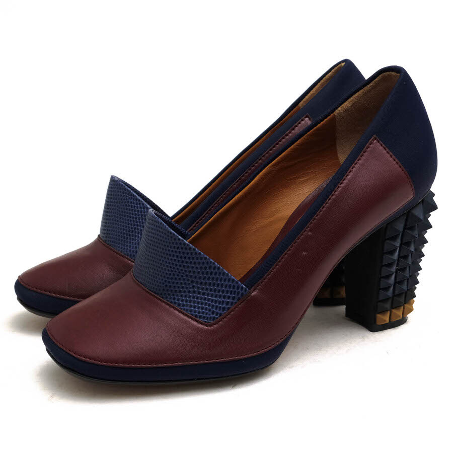 - FENDI フェンディ パンプス 牛革 カーフ ハイヒール バイカラー スタッズ