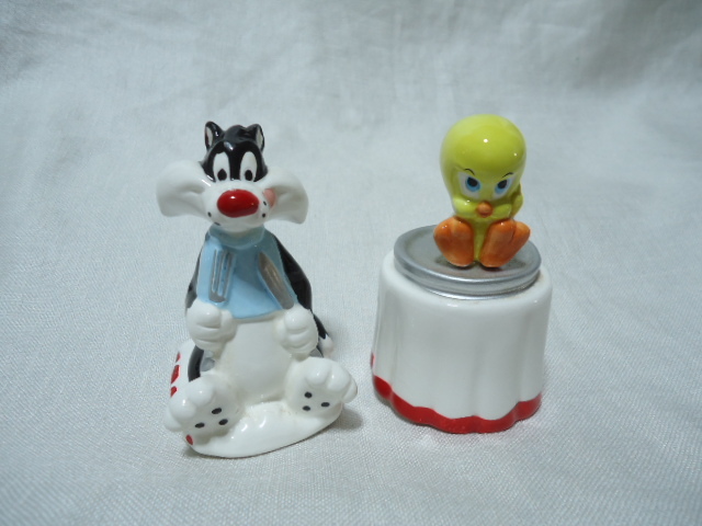 > 即決 US 1970年代製 トゥイーティ シルベスター 7.4・7.8センチ ヴィンテージ ソルト&ペッパー 陶器製 飾り物 台湾製
