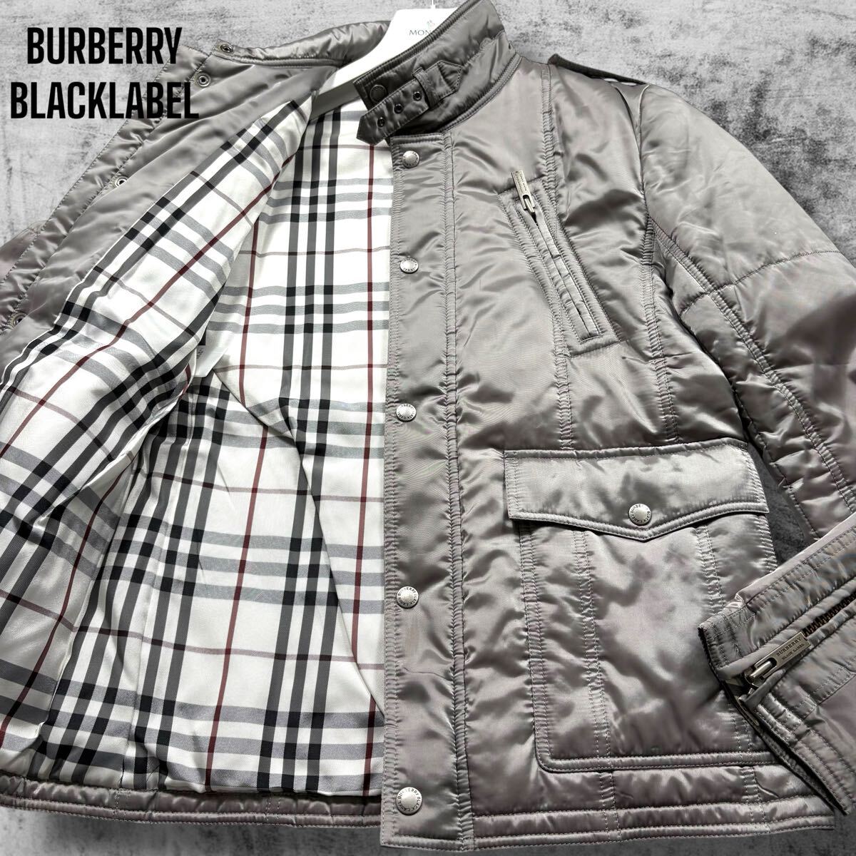 - 極美品/M◎バーバリーブラックレーベル ダウンジャケット ライダース ノバチェック ブルゾン ジャンパー シルバー BURBERRY BLACKLABEL